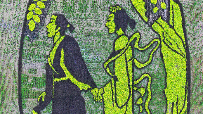 One of four images depicting the legendary romance between a mortal named Dong Yong and the seventh daughter of the Jade Emperor in a rice paddy in eastern China. /VCG Photo