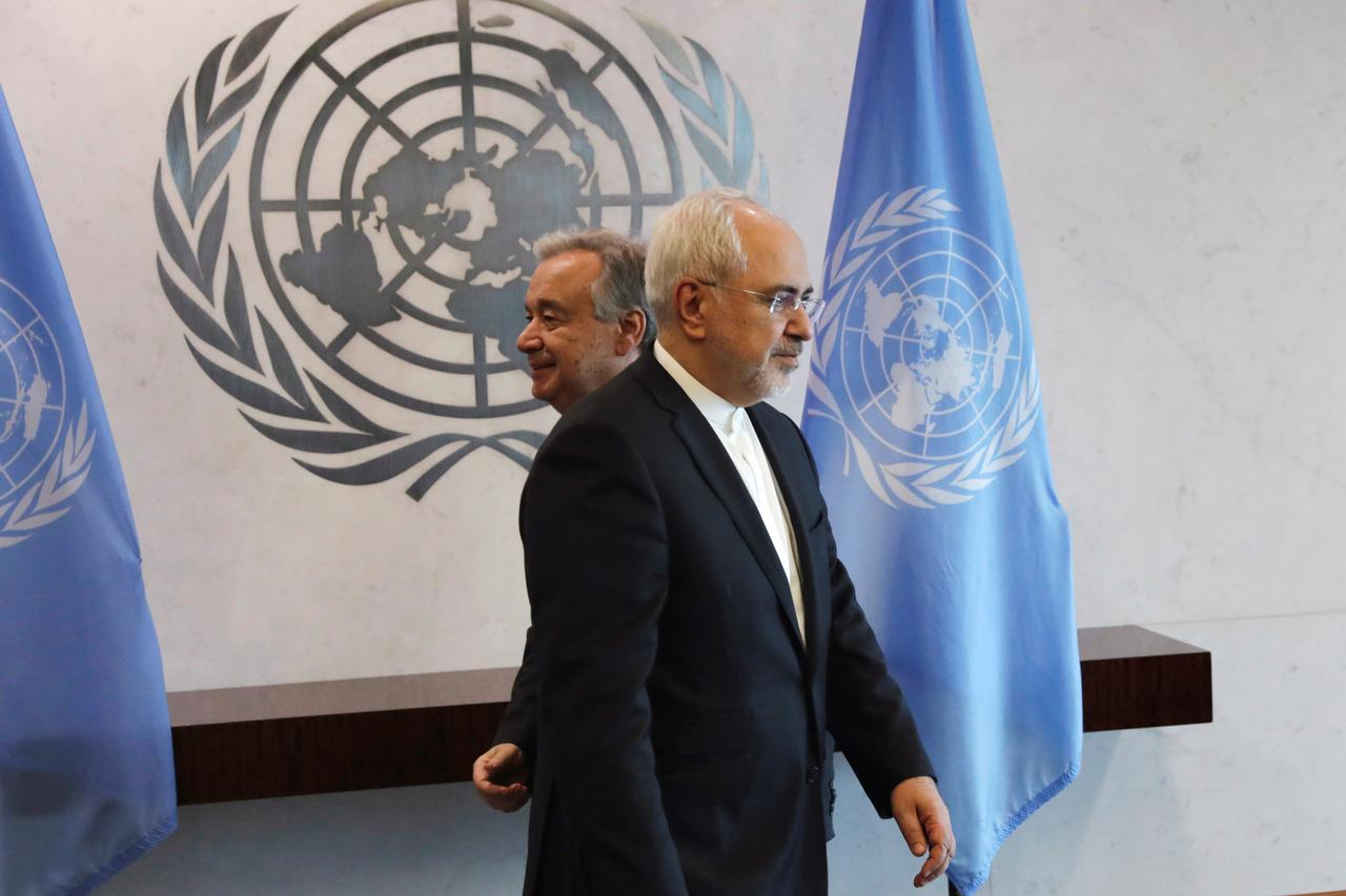 Iran's Foreign Minister Mohammad Javad Zarif walks past United Nations Secretary-General Antonio Guterres at the U.N. headquarters in New York, U.S., on July 17, 2017. /Reuters Photo