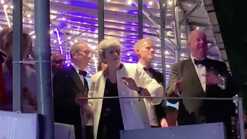 British Prime Minister Theresa May was spotted Saturday night throwing some shapes at Henley Festival. May has previously drawn criticism for her dancing and mocked herself at a Conservative Party conference by entering to the tune of Abba's "Dancing Queen."