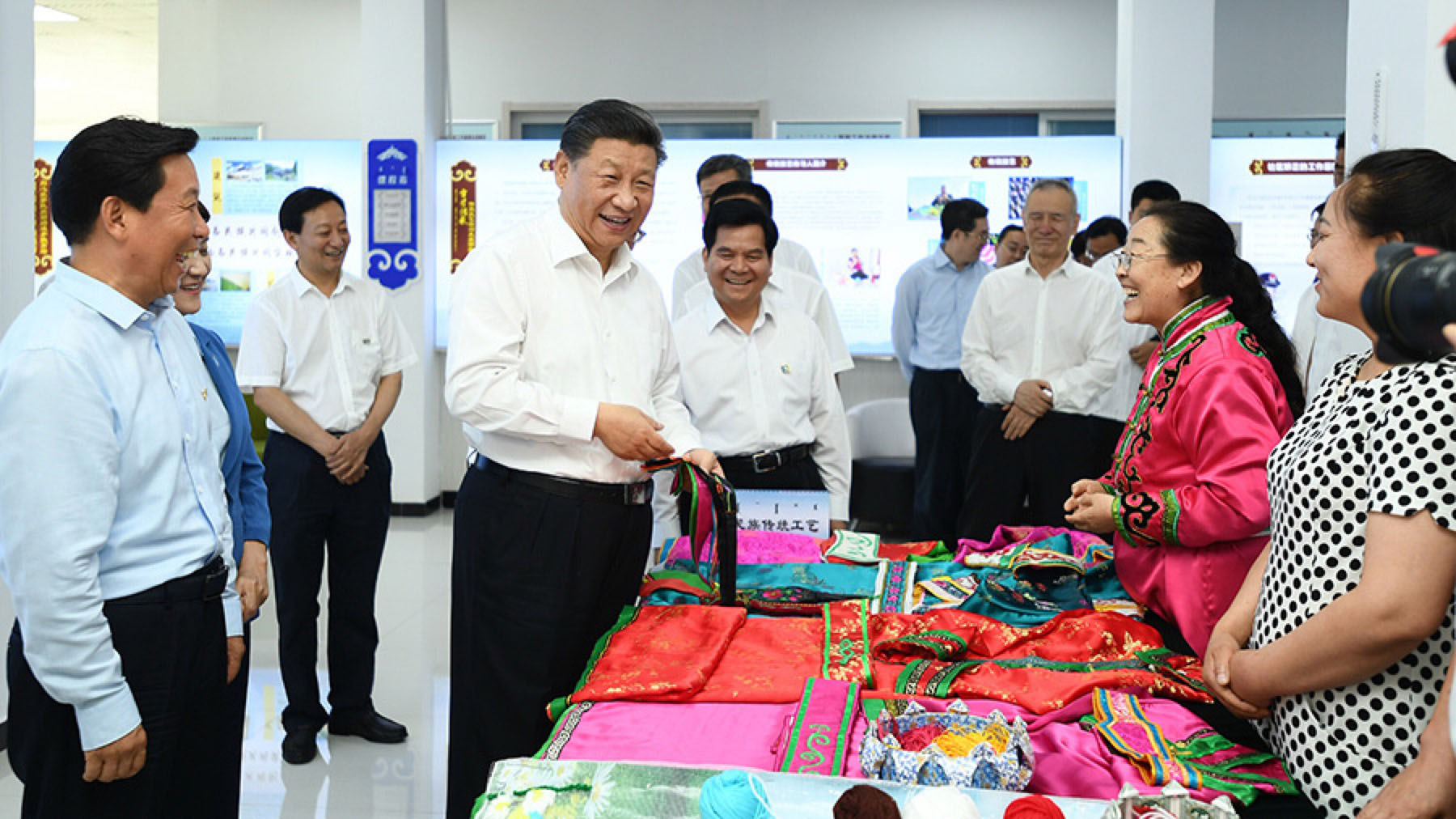 Chinese President Xi Jinping visited a community in the Songshan District in Chifeng City, north China's Inner Mongolia Autonomous Region on July 15, 2019. President Xi said that the Ulan Muqir Art Troupe performs an art form that serves and benefits the people. He also said it is advocated and supported by our Party and government, and it should be promoted.