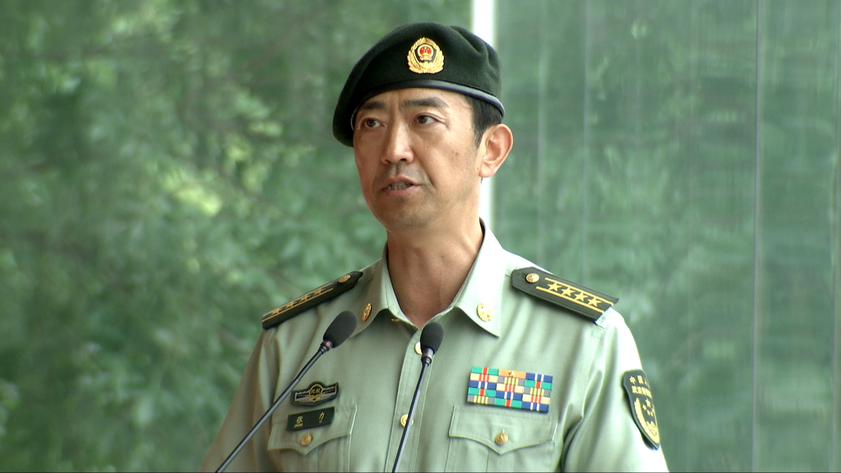 Senior Colonel Zhang Li, Commandant of SPC, makes a welcoming speech. /CGTN Photo