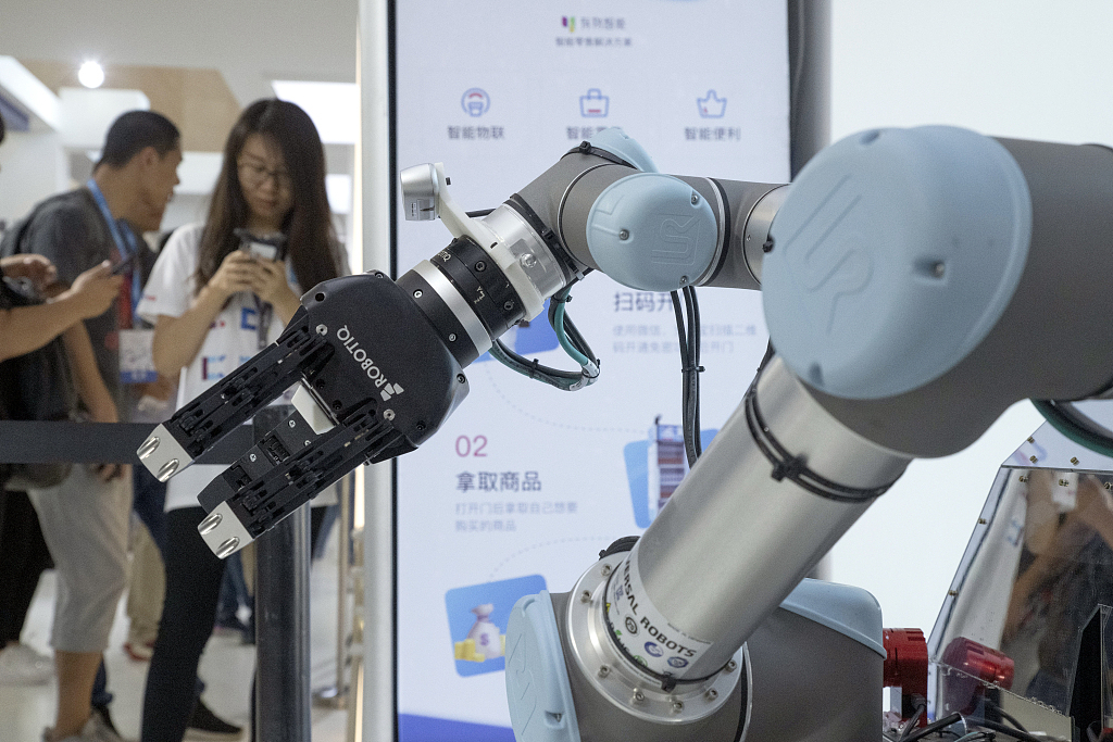 A display of a robotic arm and gripper at the Baidu Developers Conference in Beijing, China, July 3, 2019. /VCG Photo