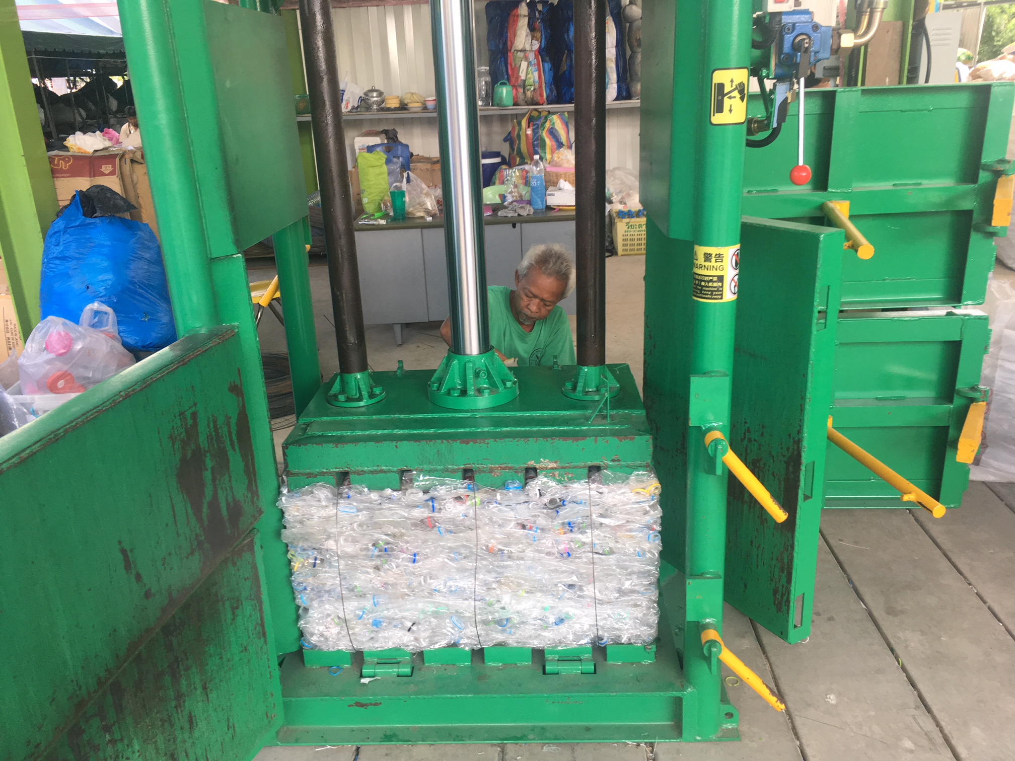 They are crushed into bales and sent to a recycling center. /CGTN Photo