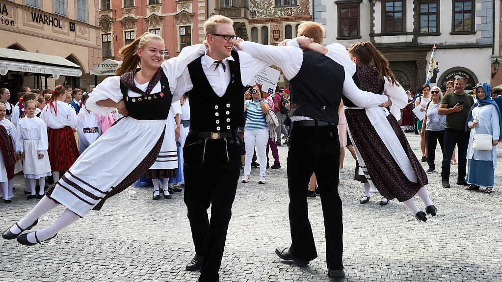Amateur folklore groups participated in the annual "Prague Folklore Days" festival in the city's Old Town on July 20, 2019, in Prague, Czech Republic. /VCG Photo