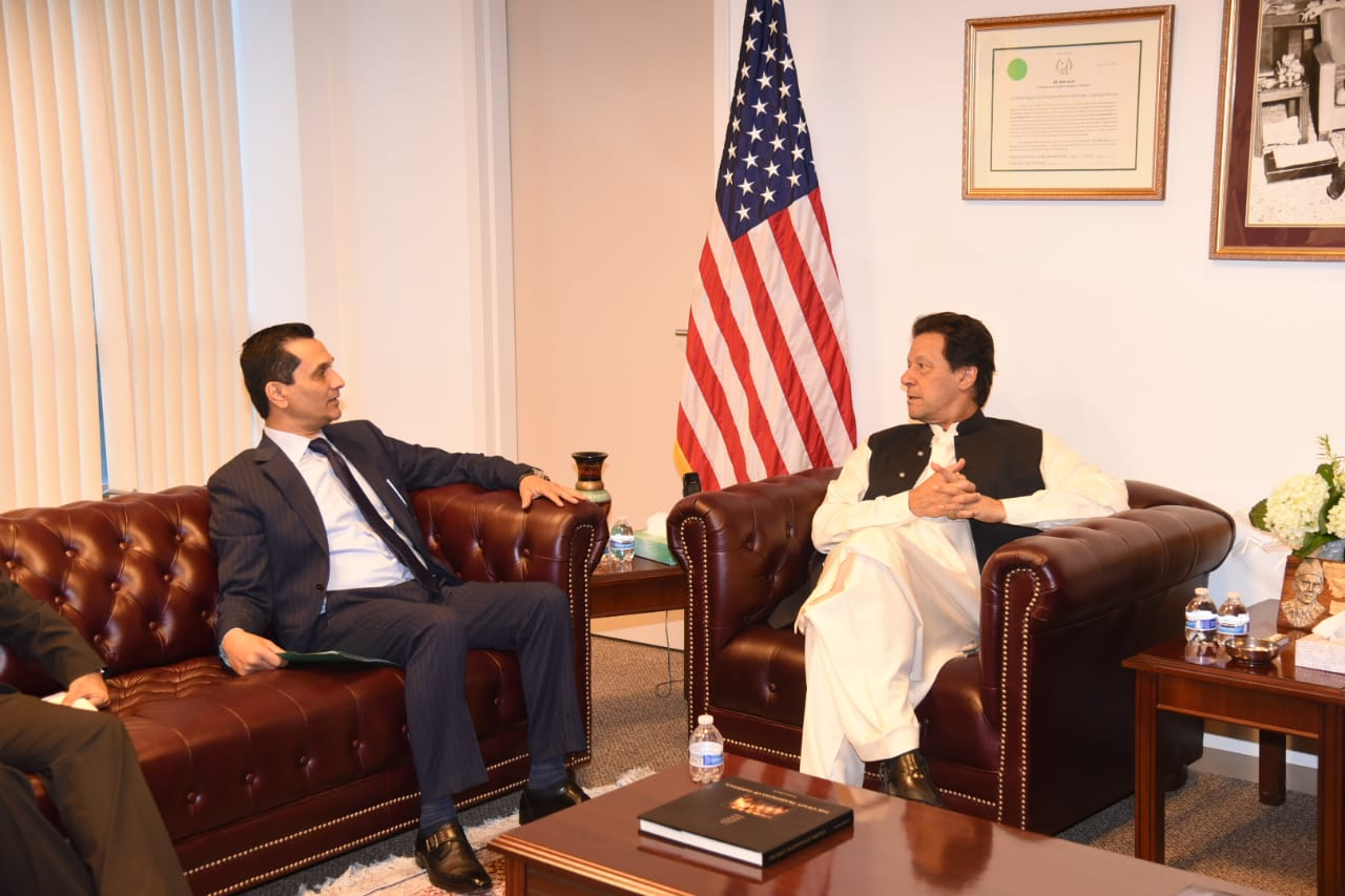 Mr. Tahir Javed, a Texas-based top Pakistani businessman and high ranking influential member of the Democratic Party, calls on Pakistani Prime Minister Imran Khan at the Pakistani embassy in Washington, DC., U.S. /CGTN Photo