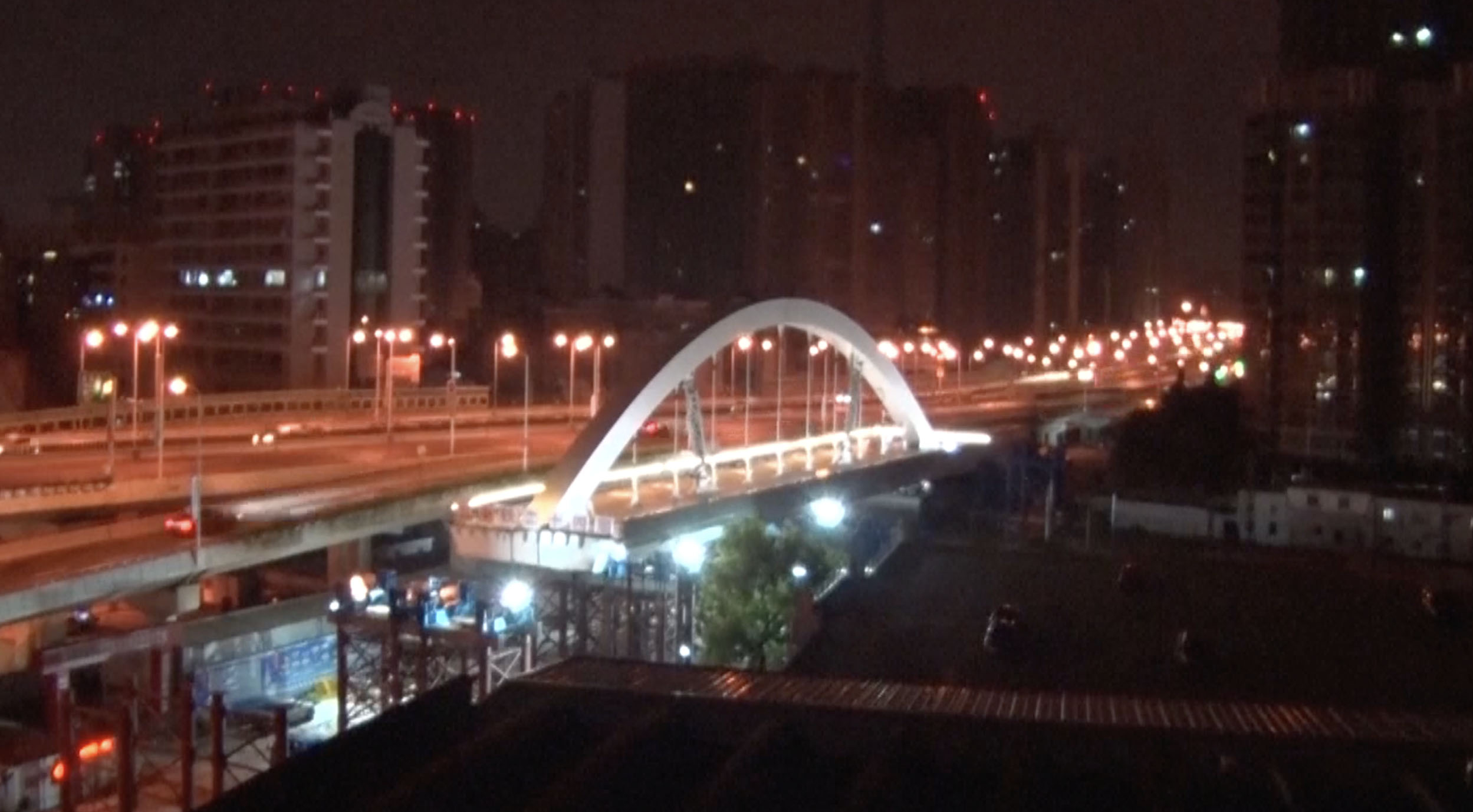 The first bridge on Beiheng Passage in Shanghai that spans parallel railway and metro tracks was successfully moved northward by 104.7 meters to the designated place, marking significant progress in the fulfillment of a key municipal construction project in the city.