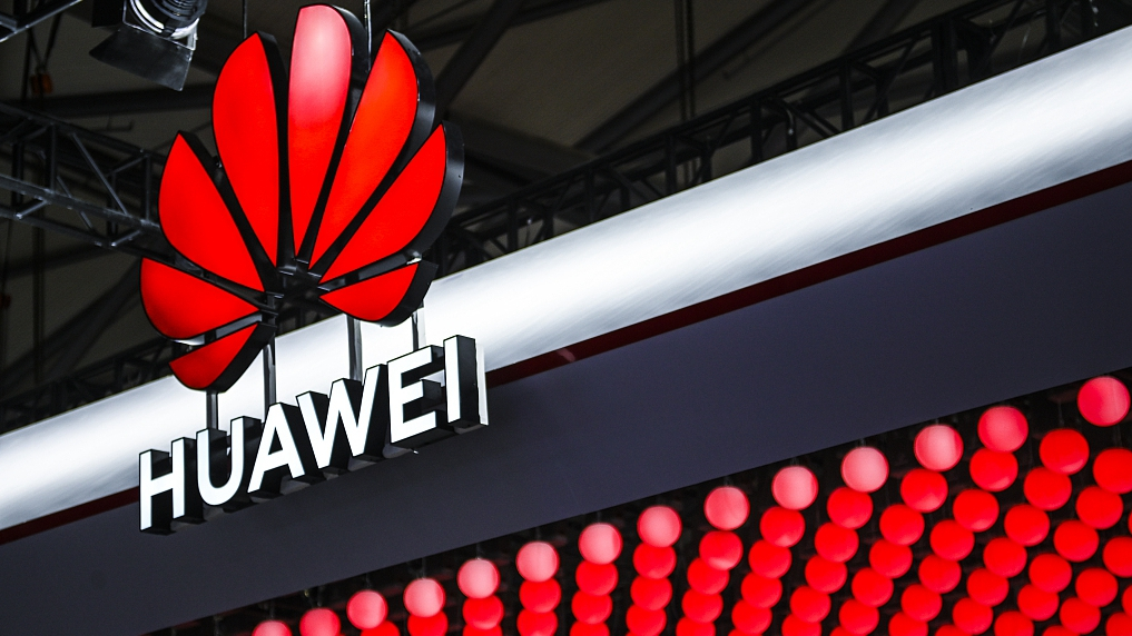 A Huawei mobile phone is displayed in front of logo of Qualcomm in Izmir, Turkey, May 28, 2019. /VCG Photo