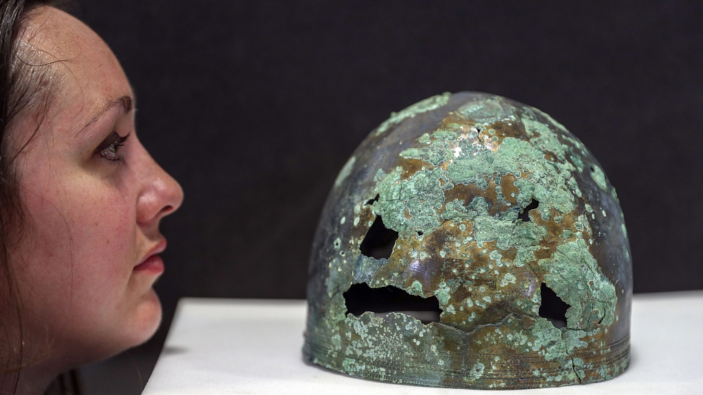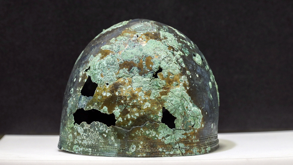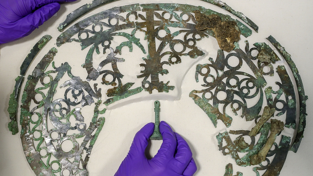Part of the headdress from the helmet belonging to the resistance fighter against the Romans was found buried with him in the grave along with a sword. /VCG Photo