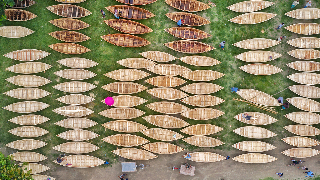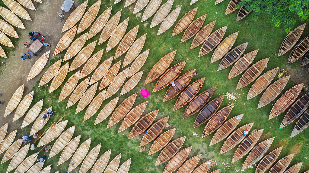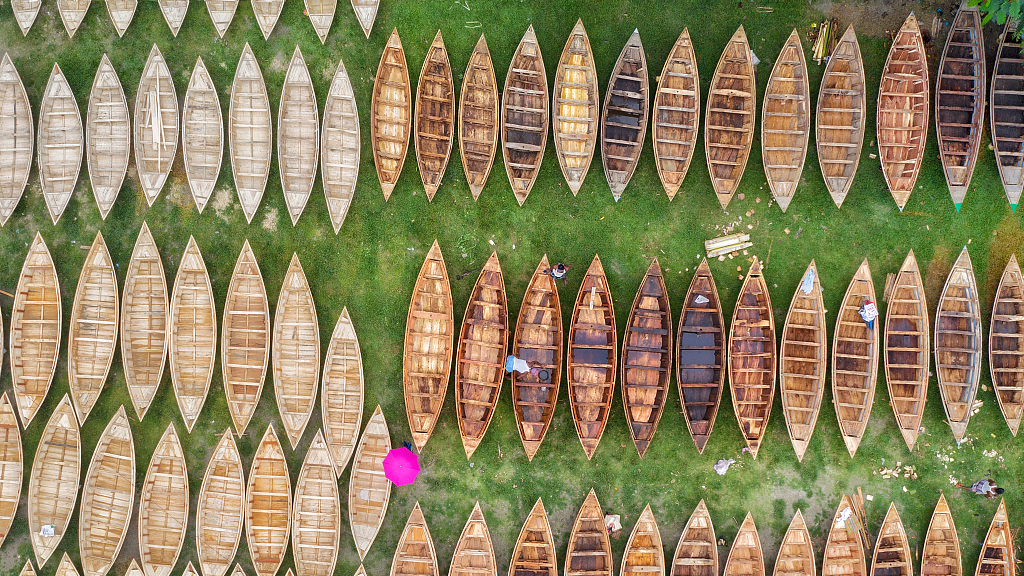 The wooden boats were all handmade by local craftsmen, and each could be sold for 1,800 Bangladesh taka (21 U.S. dollars). /VCG Photo