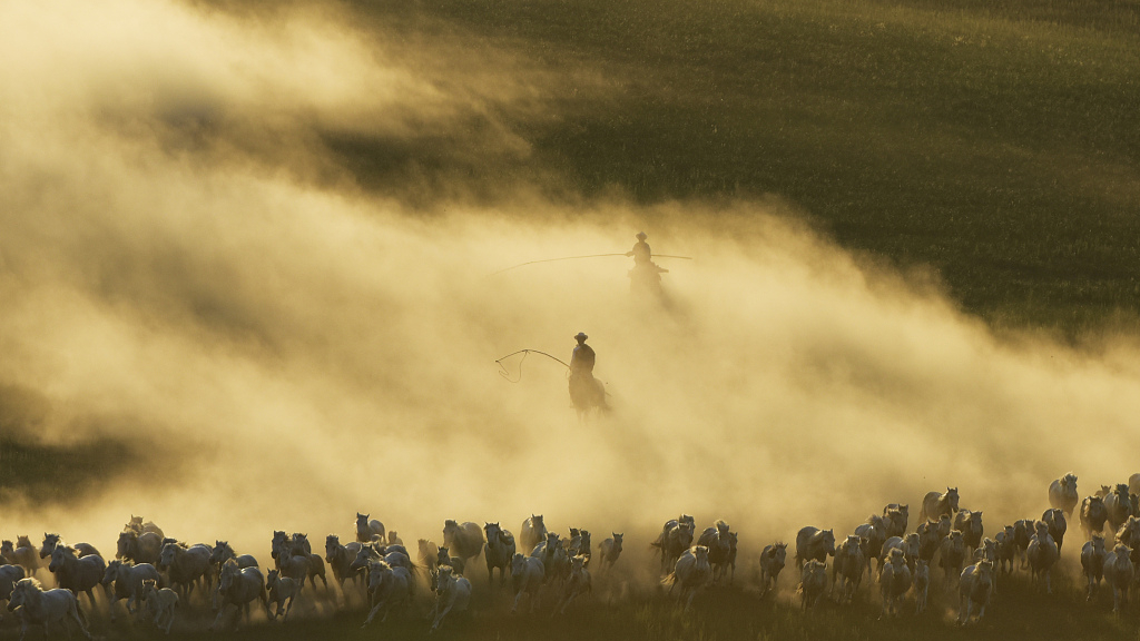 Herdsmen demonstrate horse lassoing in West Ujimqin Banner, north China's Inner Mongolia Autonomous Region, July 21, 2019. /VCG Photo