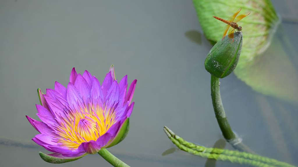 On July 23, 2019, Qionghai City in Hainan Province of southern China welcomed a rain that eased the summer heat. After the rain fall, the color of lotus flowers in a pond became more vivid against the cloudy sky, attracting visitors like dragonflies and wild birds.