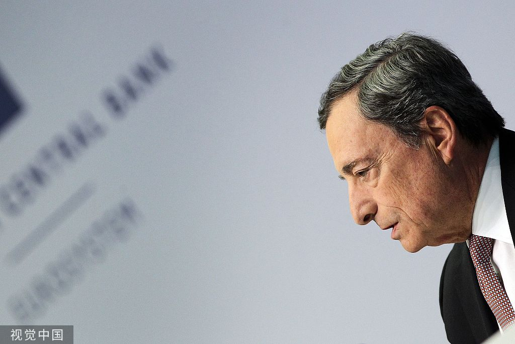 Mario Draghi, President of the European Central Bank, signals the possibility of reducing interest rate to shore up low inflation, Frankfurt, Germany, July 25, 2019. /VCG Photo