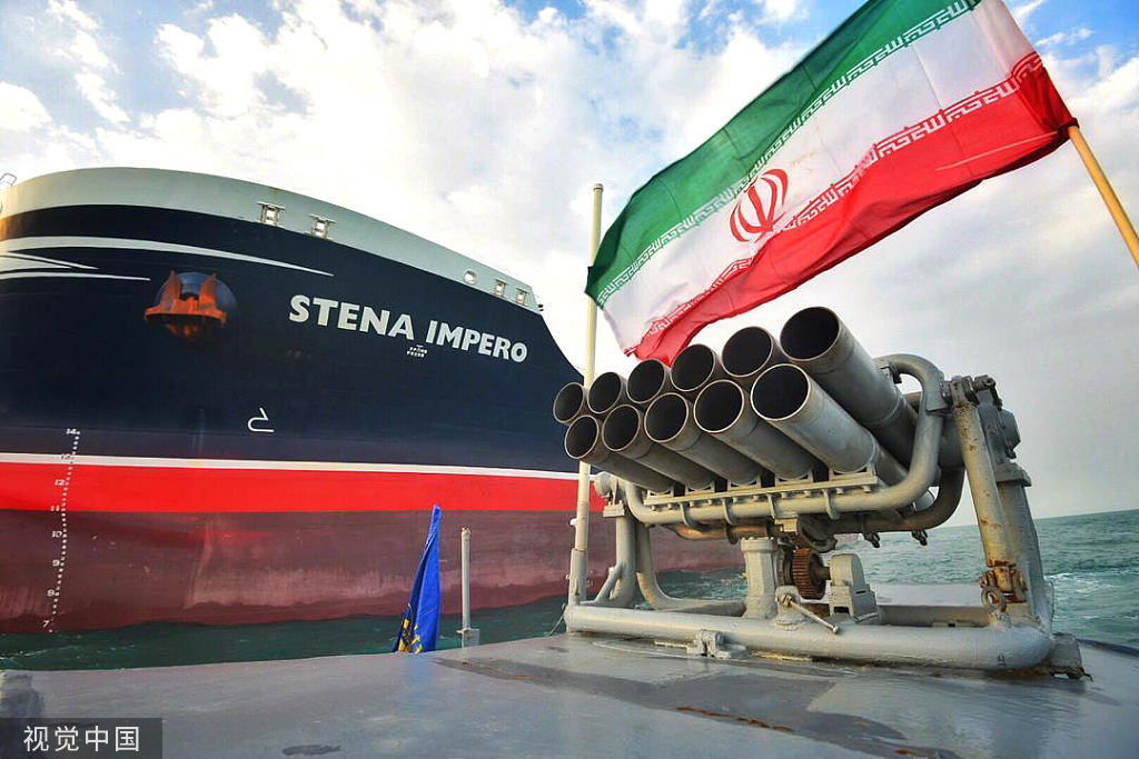 A picture from Iran's semi-official Tasnim news agency shows the Stena Impero being seized and detained between July 19 and July 21, 2019, near the Strait of Hormuz, Iran. /VCG Photo