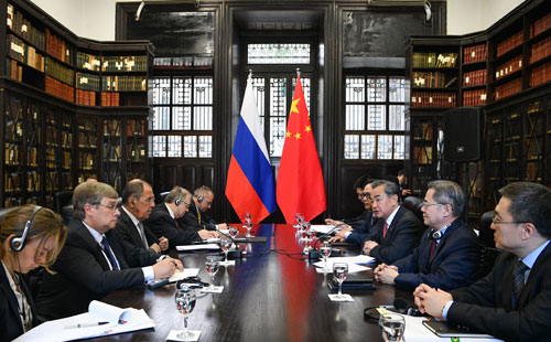 Lavrov echoed that Russia will work with China to promote development of bilateral ties and achieve more practical results, adding that the two sides should strengthen cooperation in regional and global issues.