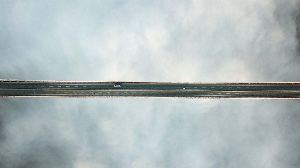 Once on the bridge cars can motor along a two-way, four-lane motorway at about 80km/h. Pedestrians can also use its special walkway. /VCG Photo