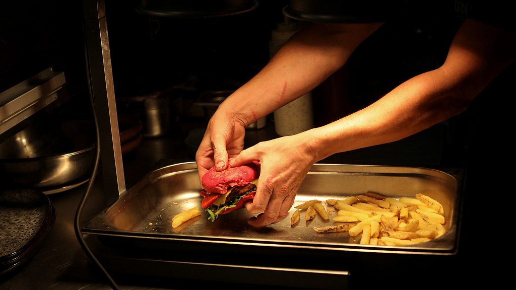 A chef prepares vegan food in the Green Grill section of the Green Vic, which is aiming to be the world's most ethical pub, in Shoreditch, London, Britain July 5, 2019. /VCG Photo