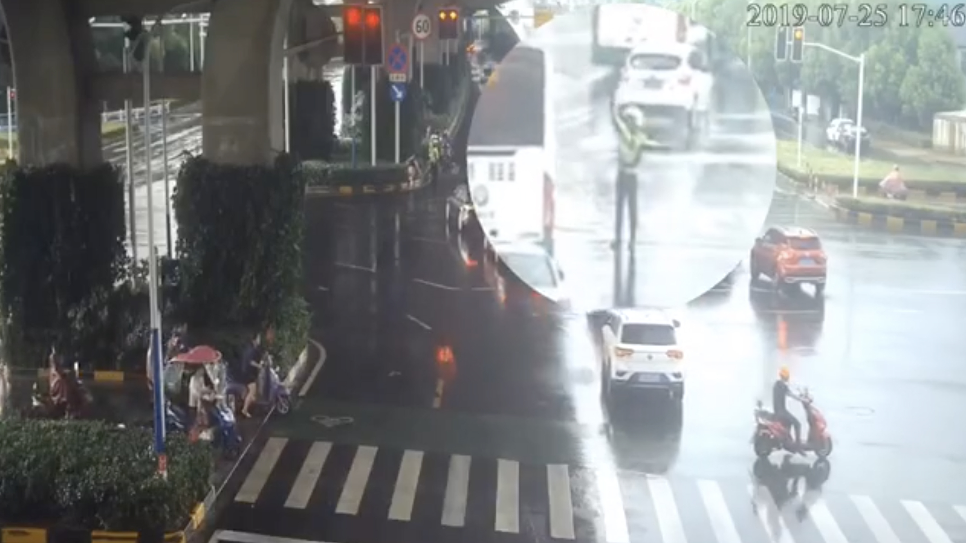 Strong winds and heavy rains hit right at peak traffic hours in east China's Changzhou City on July 25, causing a cable wire to hit the road. Two police officers continued to manage traffic, while lifting the wires in heavy rain. They kept it up until the repair car arrived 50 minutes later.