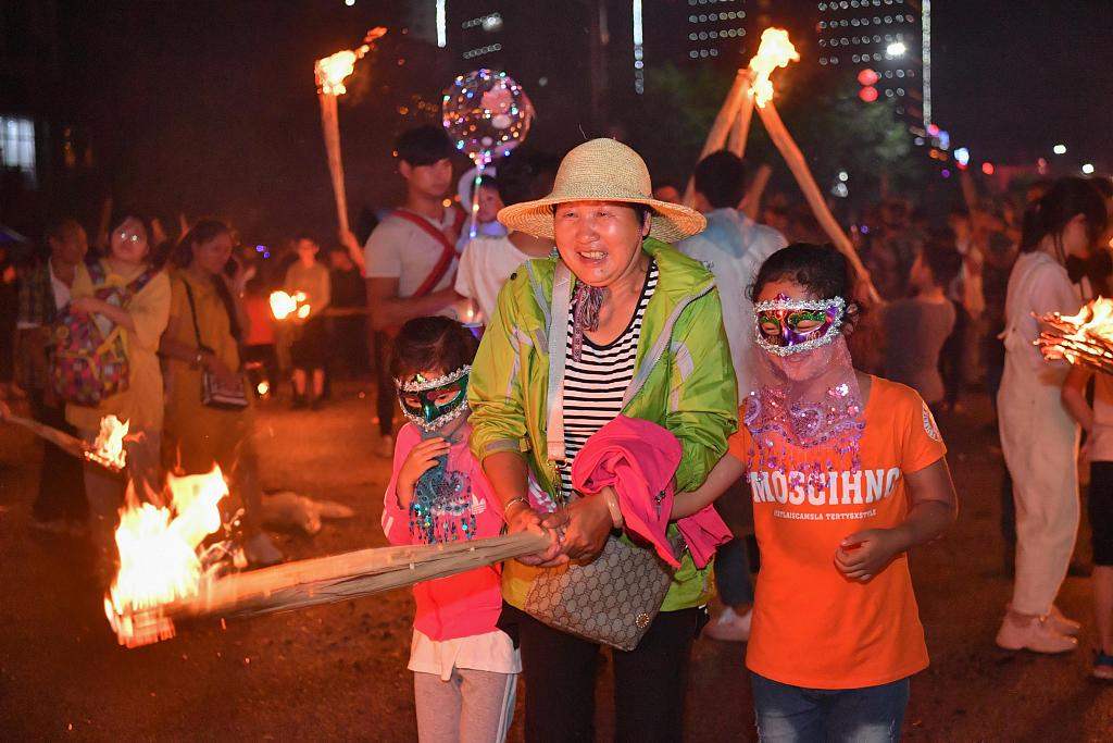 People in Shilin Yi Autonomous County celebrate the Torch Festival, July 26, 2019. /VCG Photo