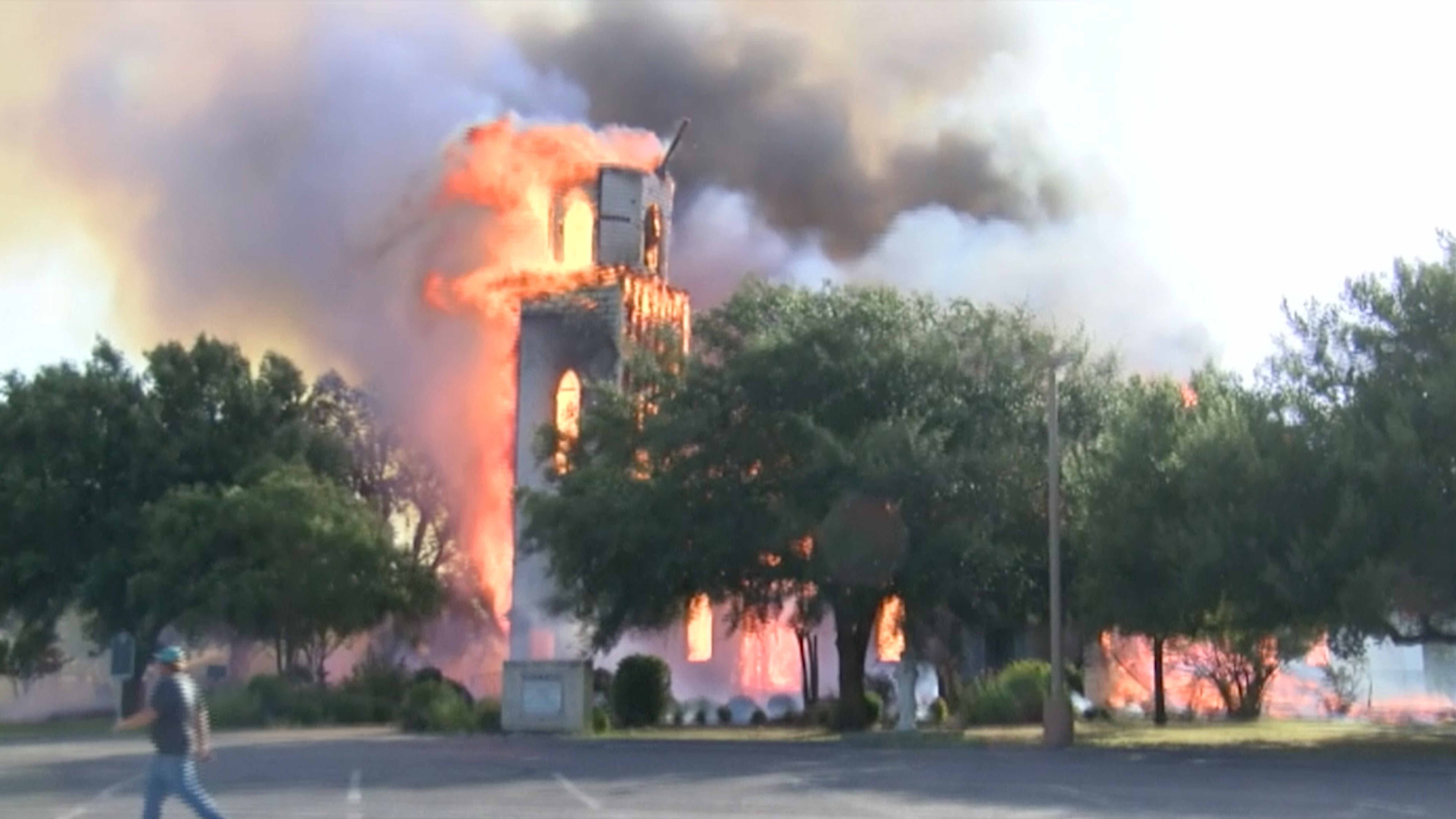 A historic rural Roman Catholic church that had served its surrounding central Texas farming community for more than a century has burned to the ground. Photos posted on the Austin Catholic diocesan Facebook page show the Church of the Visitation in Westphalia fully engulfed in flames Monday morning.