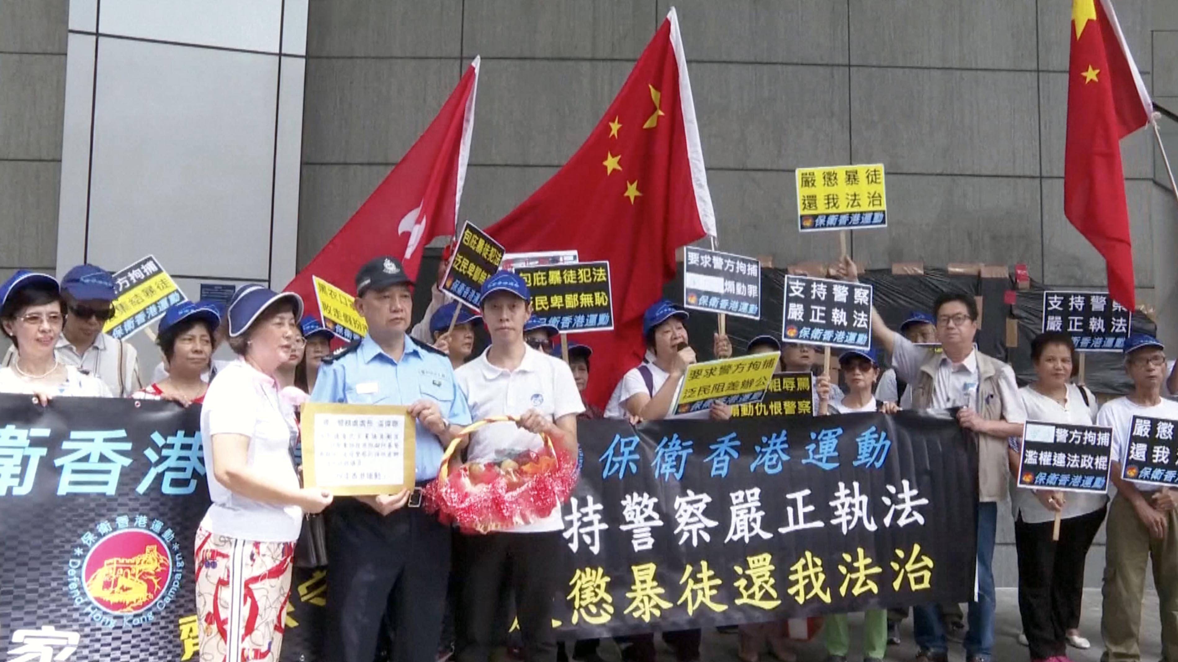 Many social organizations and residents gathered at the Hong Kong Police Headquarters, the Western District Police Station and the Yuen Long Police Station. They held an event with the theme of "Support Hong Kong police for their law enforcement action" to thank the police officers for maintaining law and order. People displayed signs reading "Support Hong Kong Police; say no to violence" and "Good job, police officers" to express their gratitude.