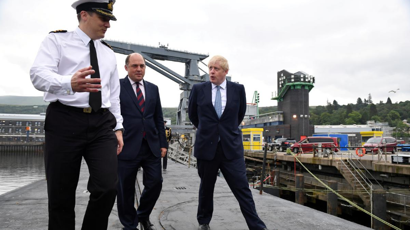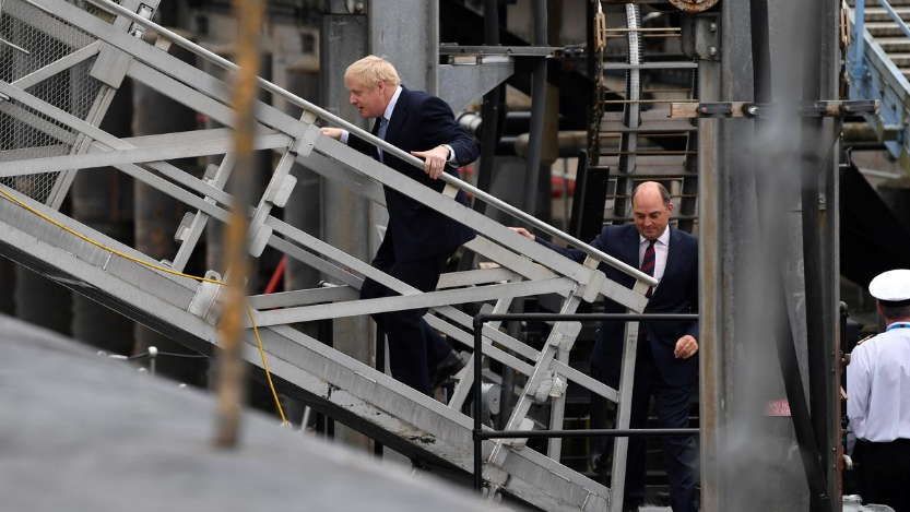 Britain's Prime Minister Boris Johnson visits HMS Victorious with Defense Secretary Ben Wallace at HM Naval Base Clyde, in Faslane, Scotland, Britain July 29, 2019. /Reuters Photo