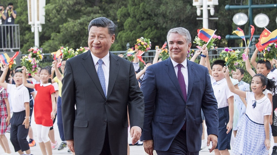 Chinese President Xi Jinping met Colombian President Ivan Duque Marquez in Beijing on Wednesday. A ceremony was held earlier to welcome the visiting leader. The two presidents then held talks at the Great Hall of the People where they discussed cooperation under the Belt and Road Initiative, trade and the development of China-Latin America ties.