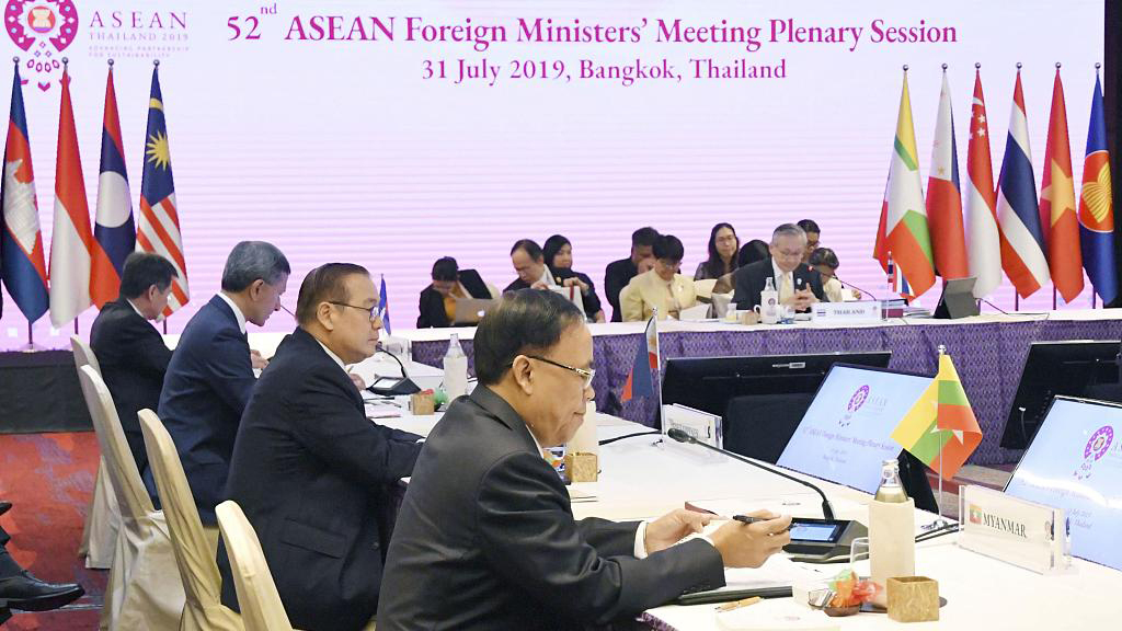 The 52nd ASEAN Foreign Ministers' Meeting is taking place in Thailand. Top officials from Southeast and East Asian nations, including Chinese Foreign Minister Wang Yi, are attending the five-day event. Earlier today, Wang Yi announced the completion of the first reading of the Single Draft Negotiating Text of the Code of Conduct in the South China Sea ahead of schedule. He said it marks an important step toward the goal of concluding the consultations within three years. He also held a press briefing on the issue.