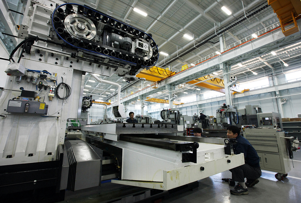 Employees work on the production line at the Hyundai Wia Corp. plant in Changwon, South Korea. /VCG Photo