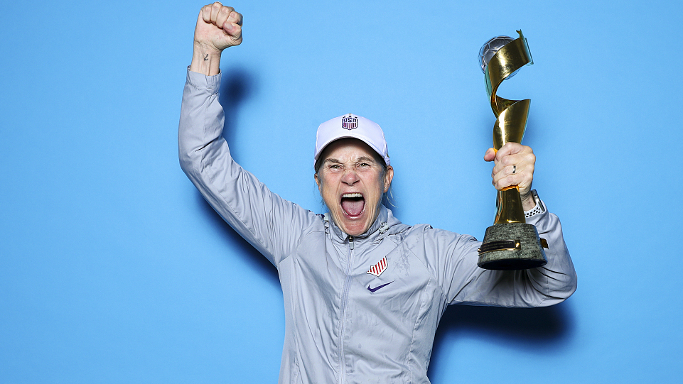 Jill Ellis celebrates victory after the 2019 Women's World Cup final win over Netherlands at Stade de Lyon, July 7, 2019. /VCG Photo