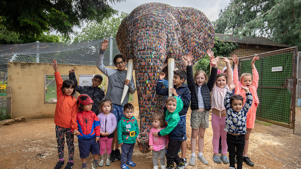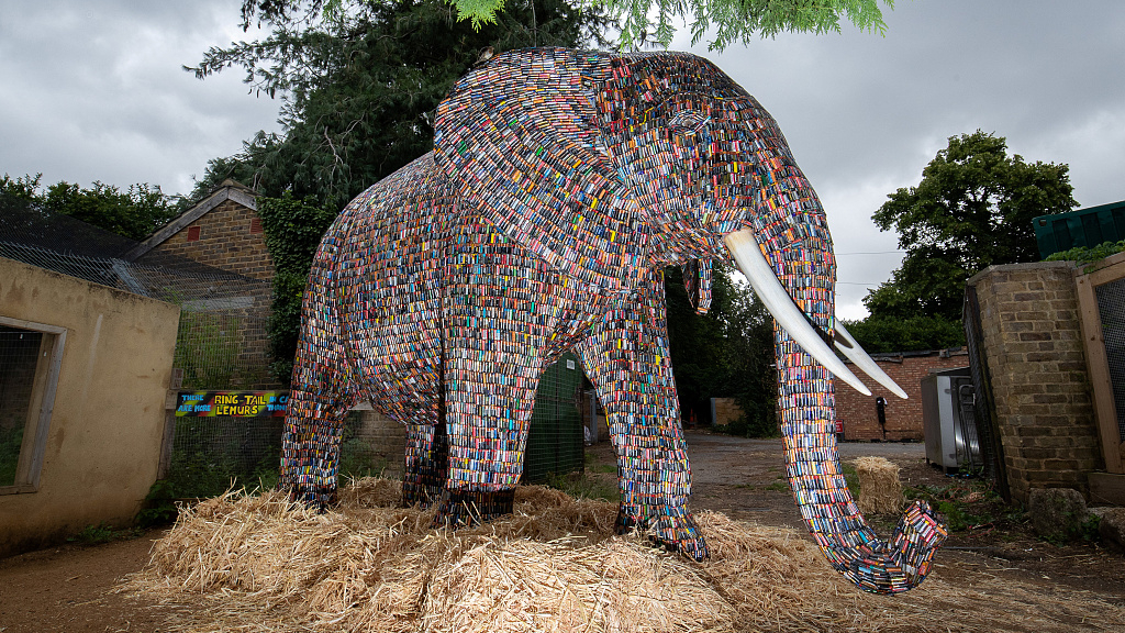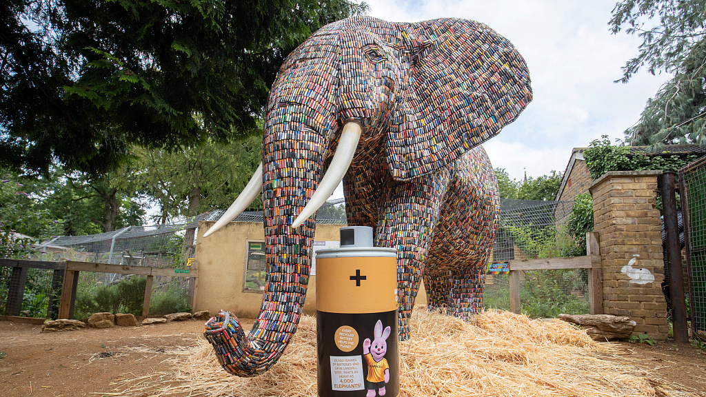 The model was created to bring awareness to the fact that nearly 20,000 tons of portable cells end up in UK landfill sites every year, which is equivalent to the weight of 4,000 elephants. /VCG Photo
