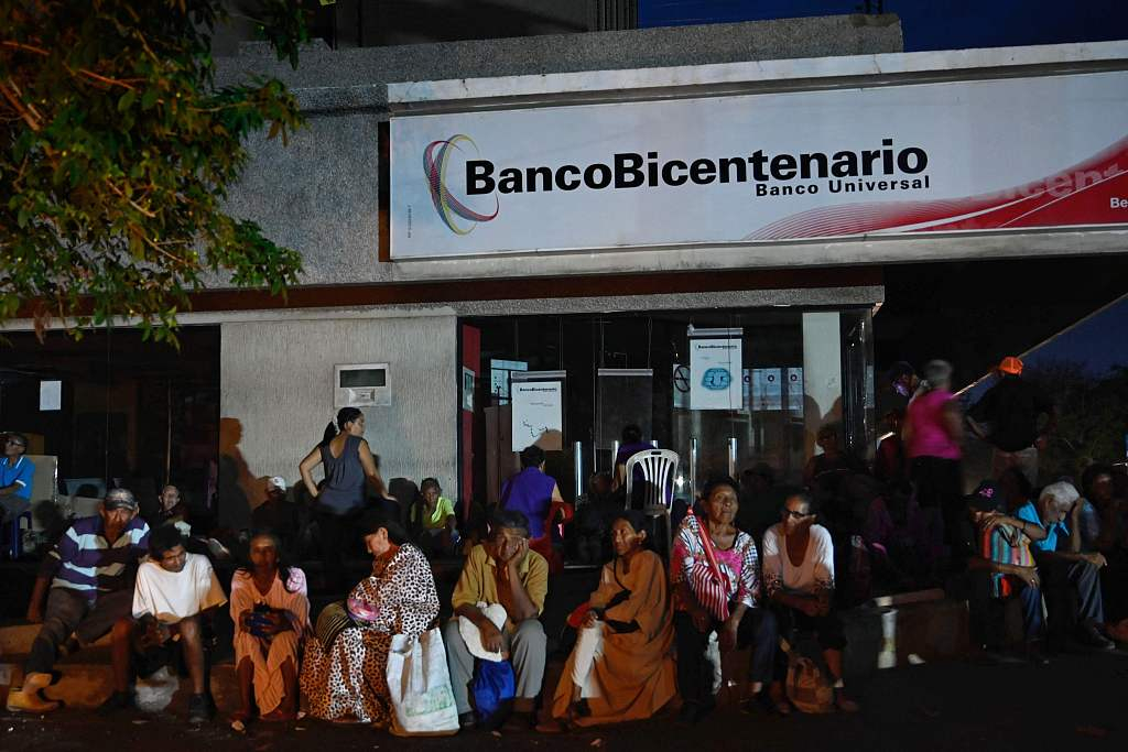 People get ready to spend the night outside a bank in Maracaibo, Zulia State, Venezuela, as parts of the country were hit by a massive power cut, July 22, 2019. /VCG Photo