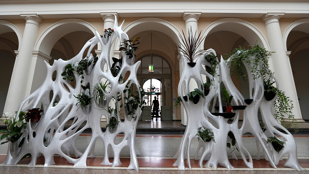 The world's first 3D-printed urban biodiversity habitat installation, the "Genesis Eco Screen", was unveiled to the public in Berlin, Germany on Wednesday. /VCG Photo