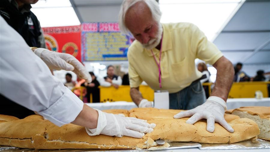 In Mexico City, where chefs have made what they say is the world's biggest "torta" during an annual event celebrating the traditional sandwich. It usually takes less than three minutes for chefs to assemble the 72-meter sandwich.