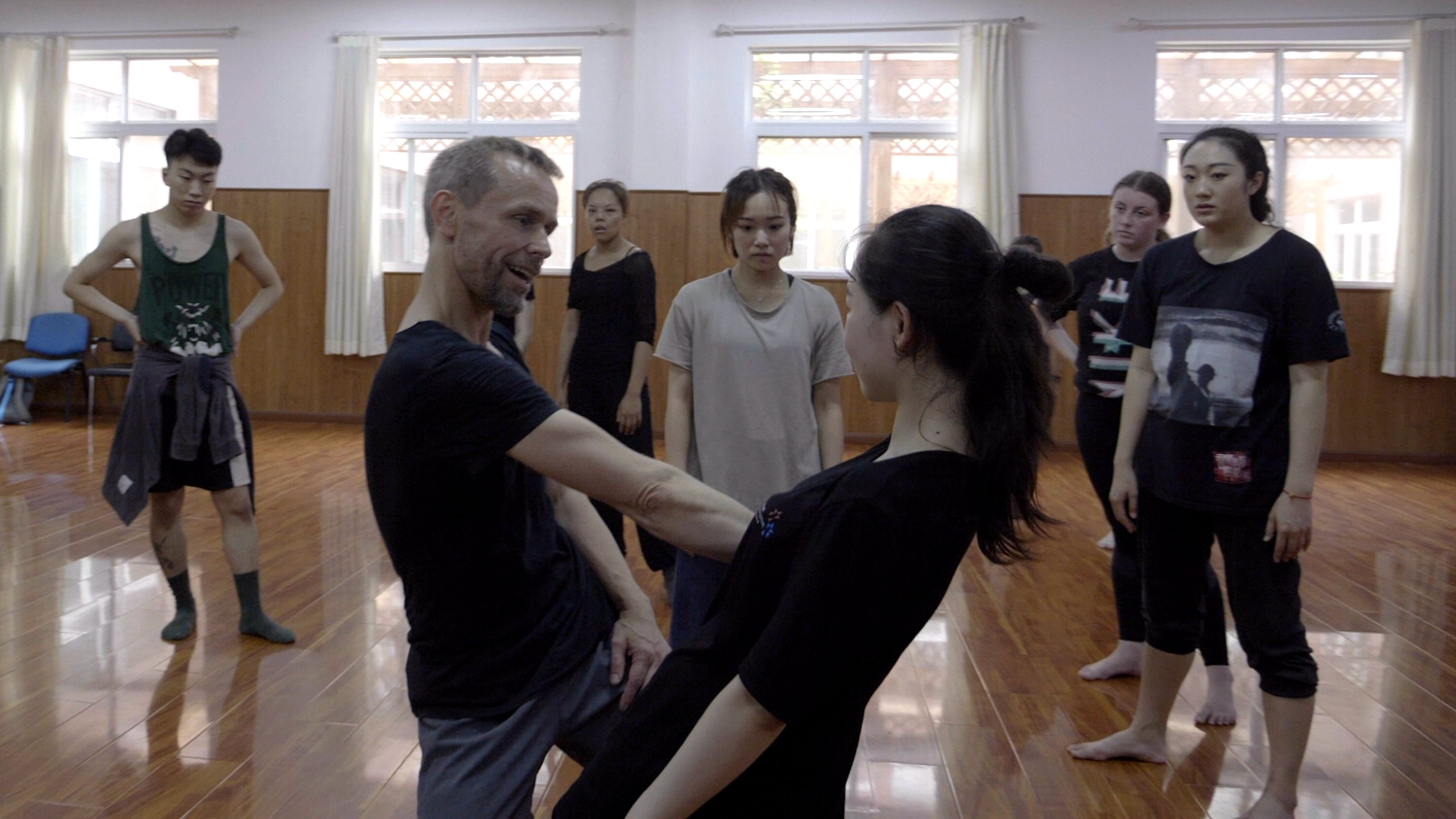 After one of his first visits to China, Bjerregaard invited a Chinese dancer to work with him in Denmark. When he taught the Chinese dancer his material, the Chinese dancer always added his own tradition. "I made a straight line, but he would always bend in the end. That's always interesting to see," said Bjerregaard.