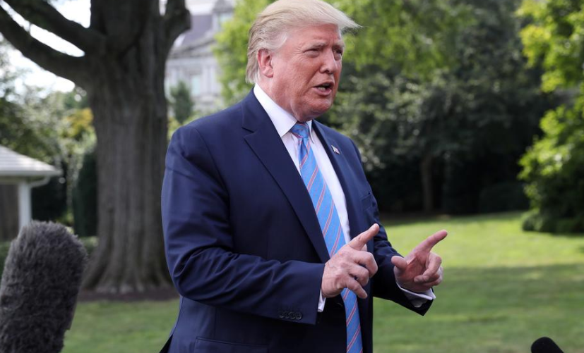 Donald Trump talks to reporters as he departs for travel to Bedminster, New Jersey from the South Lawn of the White House in Washington, U.S., August 2, 2019. /Reuters Photo