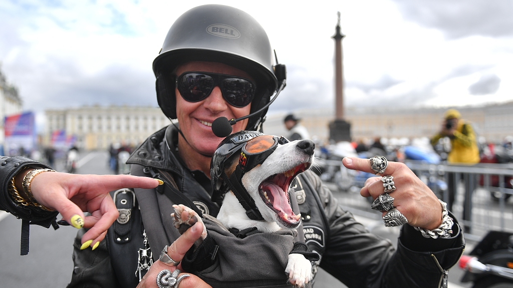More than 100,000 visitors from 25 countries and 3,000 bikers are expected to participate in the motorcycle parade in St. Petersburg. Russia, August 2, 2019. /VCG Photo