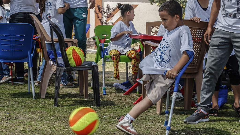 The camp has 53 disabled children who lost their limbs due to Israeli wars and those who were born with disabilities. It aims to provide social activities for children and teach them how to deal with the daily challenge of life as an amputee, a spokesperson from PCRF told Xinhua. /VCG Photo