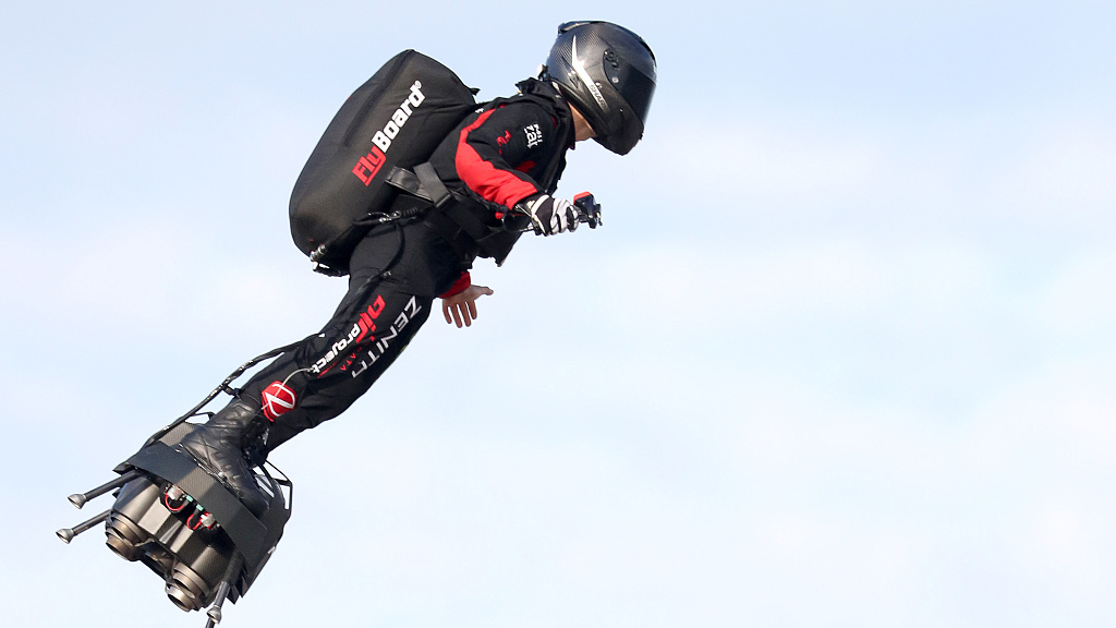Previously, the French military showed interest in Zapata's invention, so they give his company 1.5 million U.S. dollars to develop the device, as well as a private field to test the hoverboard. /VCG Photo