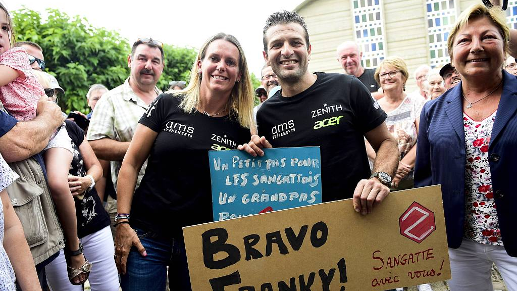 It takes him 22 minutes to fly over the Channel and land on Saint Margaret’s Bay in southern England from Sangatte in northern France, covering roughly 34 kilometers at an average speed of 140 kilometers per hour, August 4, 2019. /VCG Photo