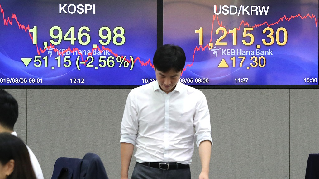 Photo taken in Seoul, ROK on August 5, 2019 shows the benchmark Korea Composite Stock Price Index (KOSPI) plunged 51.15 points. /VCG Photo