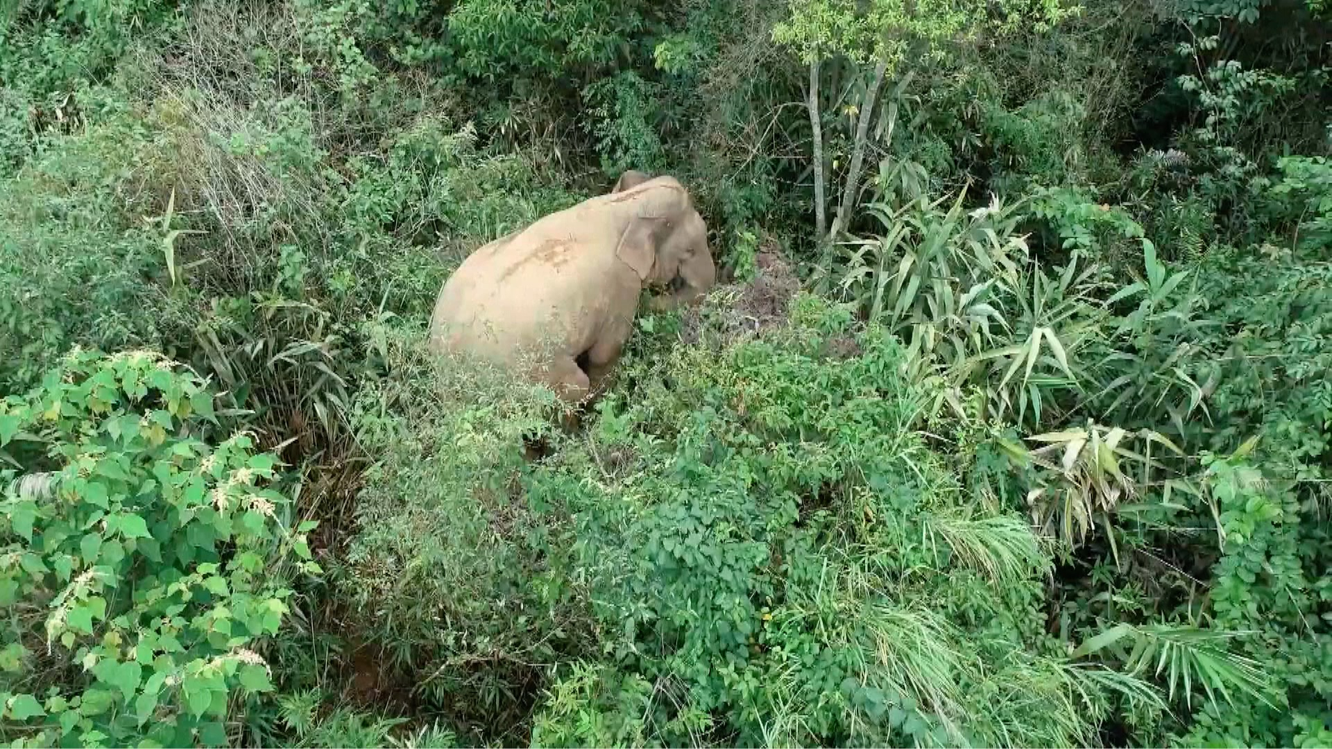 A wild elephant wandered to a county town in Xishuangbanna Dai Autonomous Prefecture, southwest China's Yunnan Province, catching the attention of the locals on Sunday. The wild elephant was first spotted near Mengla Farm on Friday. On Sunday morning, it made a temporary visit to the urban areas. To ensure the safety of both the residents and the elephant, the local authorities immediately arranged a clearing of the area and closing relevant roads. Drones were also used to track and monitor the elephant, which was still wandering around nearby as of Monday noon. The police staff have been keeping close track of its whereabouts. So far, no clash between the elephant and humans has been reported.