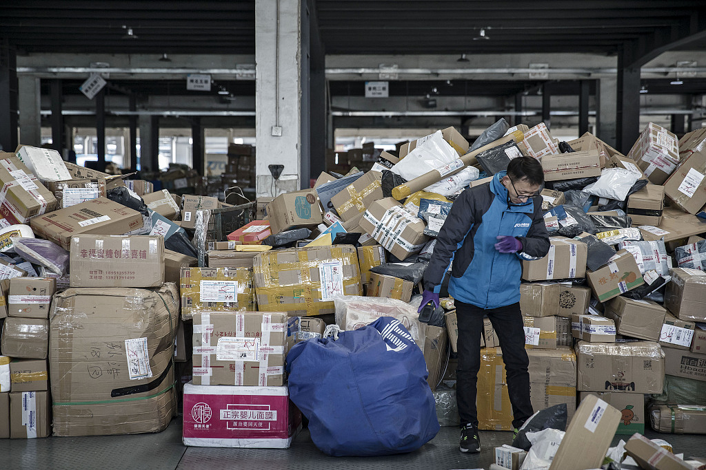 How many postal packages were delivered in China this year?