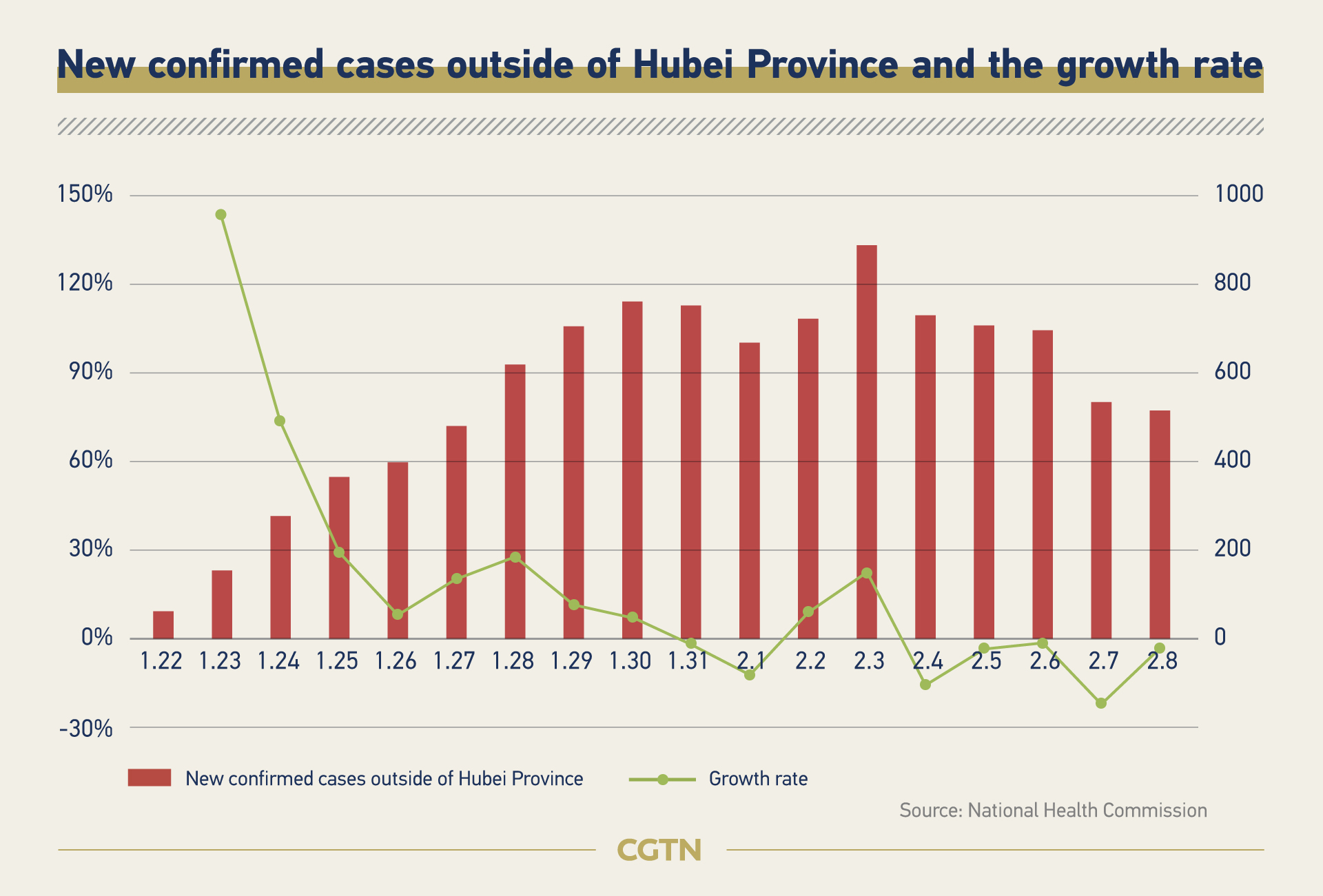 The rate of increase in coronavirus cases outside central China's Hubei Province declined last week, according to National Health Commission (NHC). By what percent did the rate drop?