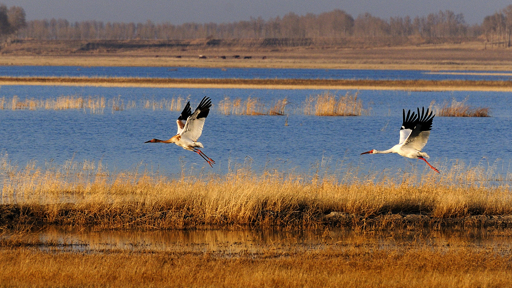Wetlands in northeast China's Jilin Province have welcomed thousands of migratory birds, including about 2,000 Siberian cranes.