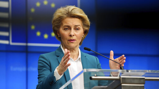 European Commission President Ursula von der Leyen addresses the media after a video-conference with G7 leaders at the European Council building in Brussels, March 16, 2020. /AP
