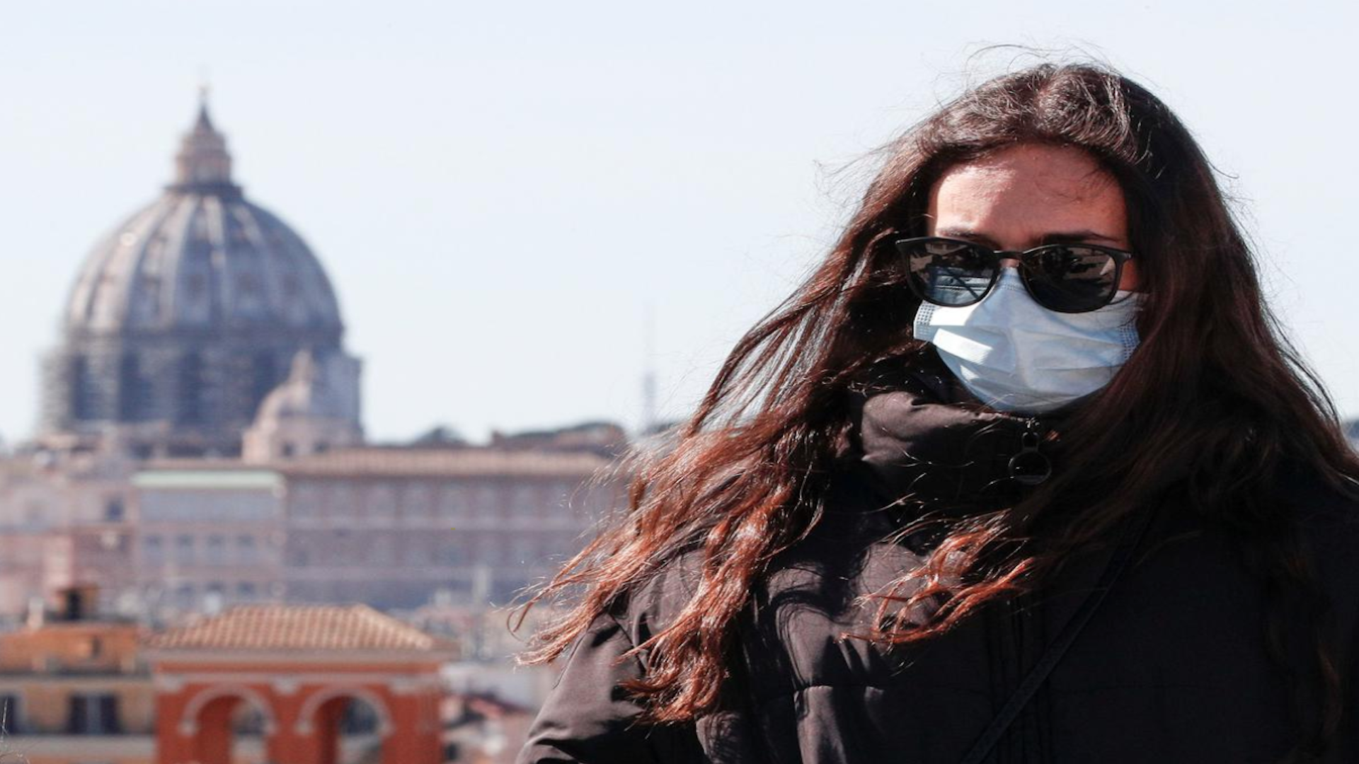 A woman wears a protective mask in downtown Rome, Italy, February 28, 2020. /Reuters