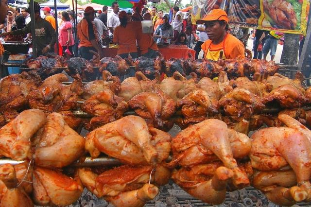 A stall worker prepares roasted chicken to be sold at a Ramadan bazaar at Shah Alam Stadium, west of Kuala Lumpur, in Malaysia's state of Selangor, September 6, 2009. /Reuters