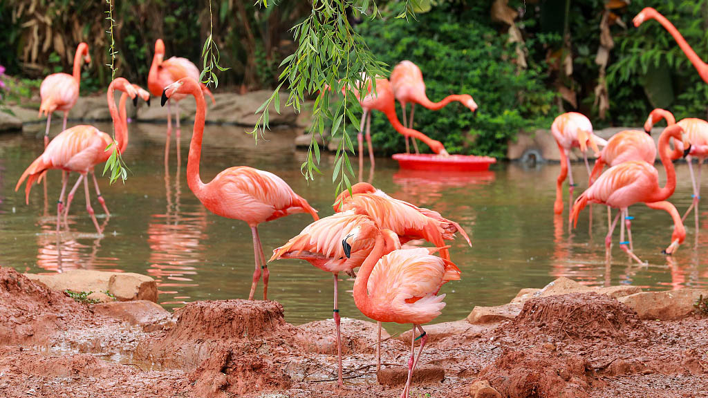 A group of flamingos in the Wuhan Zoo, April 22. 2020. /VCG