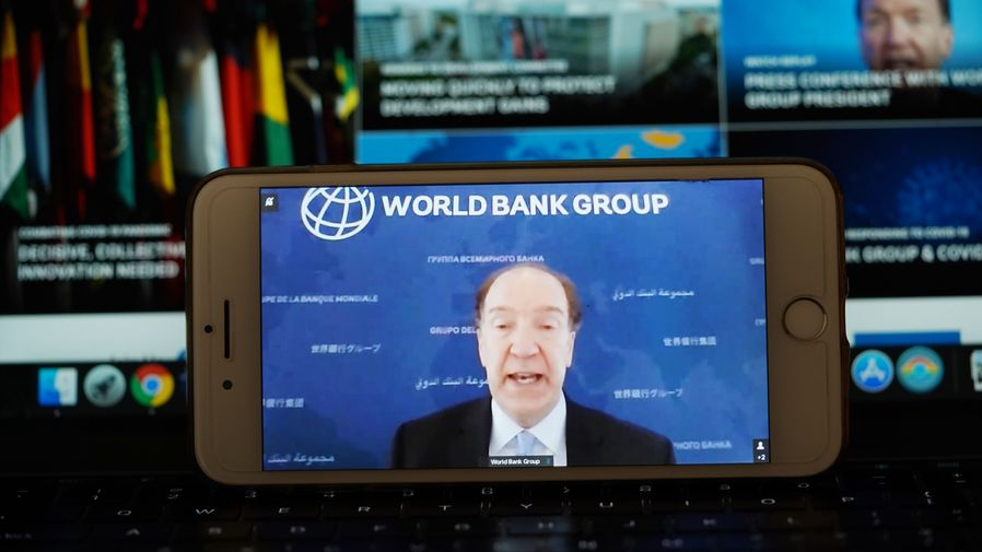 World Bank Group President David Malpass speaks at a virtual press conference in Washington, D.C., the United States, on April 17, 2020. /Xinhua