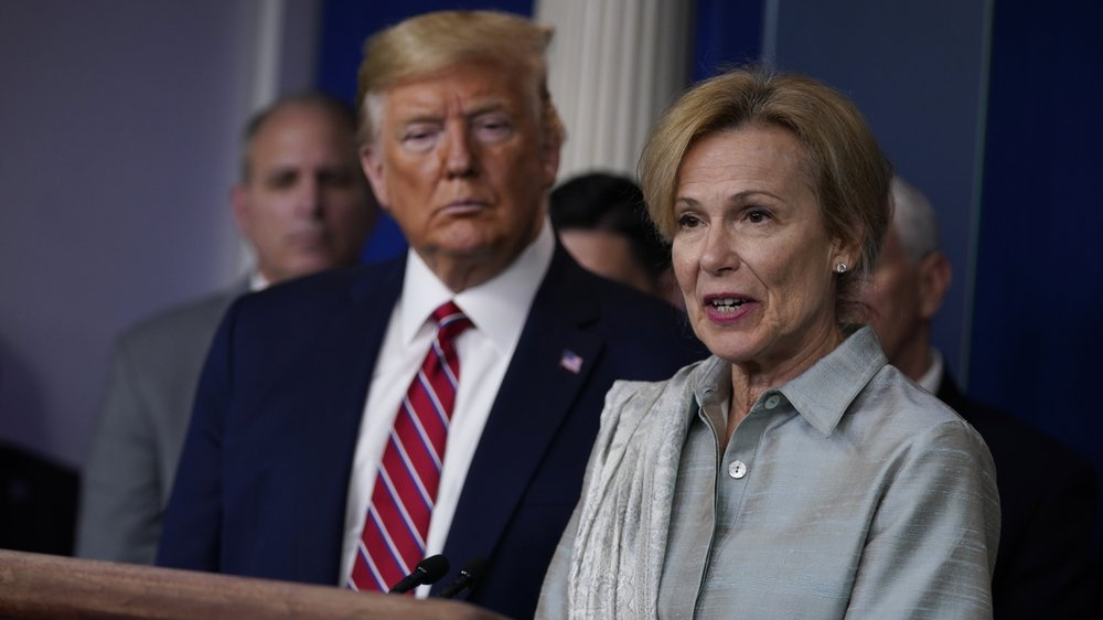 In this March 20, 2020, file photo President Donald Trump listens as White House coronavirus response coordinator Dr. Deborah Birx speaks during a coronavirus task force briefing at the White House in Washington. /AP